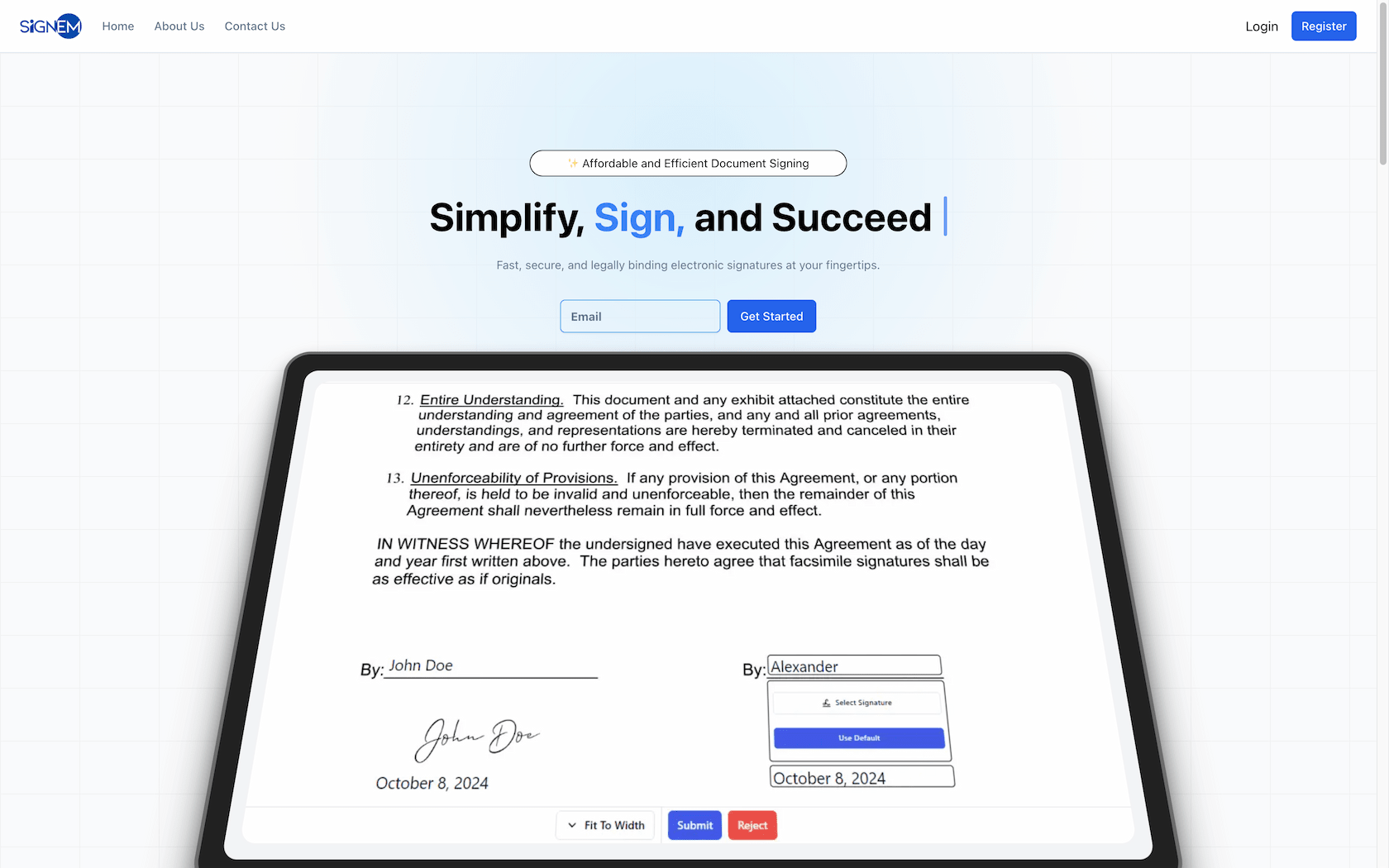Developed Signem, a secure and user-friendly digital document signing platform that enables individuals and organizations to prepare, send, and track legally binding agreements with ease. Designed to streamline workflows and reduce turnaround times.